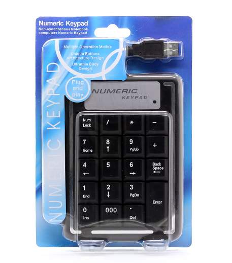 Se conecteaza la unul dintre usb-urile calculatorului sau laptopului. Ideal pentru laptopurile fara tastatura numerica.