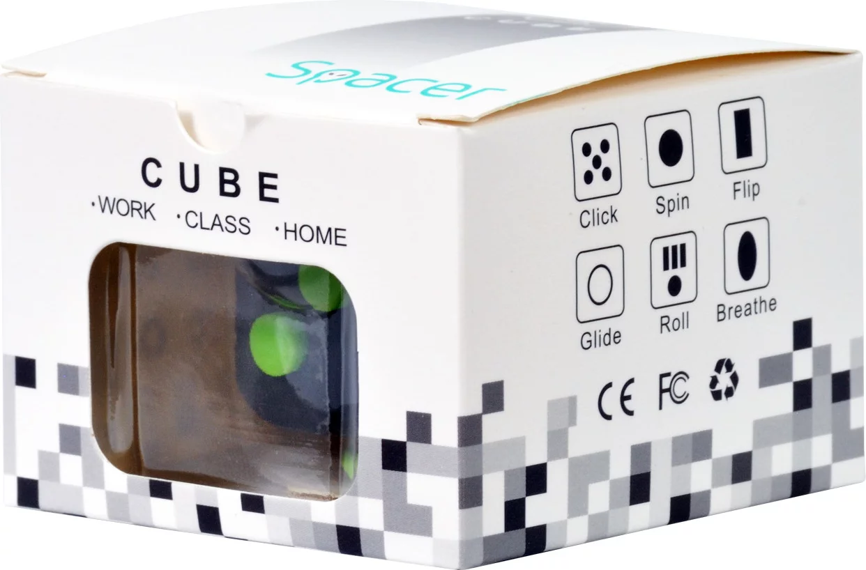 CUB ANTISTRES SPACER, FIDGET, black cu butoane green, “SP-CUBE-FGET”