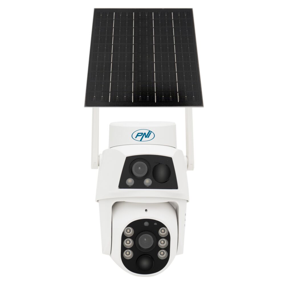 Camera Supraveghere Video PNI IP894 GSM 4G PTZ Dual Lens 2MP + 2MP Panou Solar 5.5W Acumulator Bloc 8000mAh Microfon Difuzor