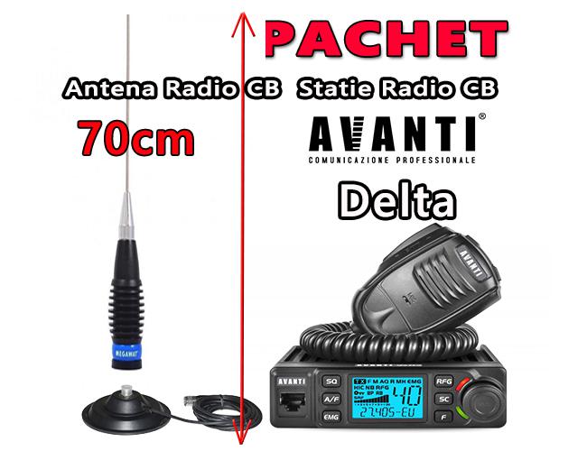 Statie Radio CB AVANTI Delta 15 Autosquelch 12V – 24V Roger Beep + Antena Radio CB Megawat ML70 cu Magnet Megawat 145PL